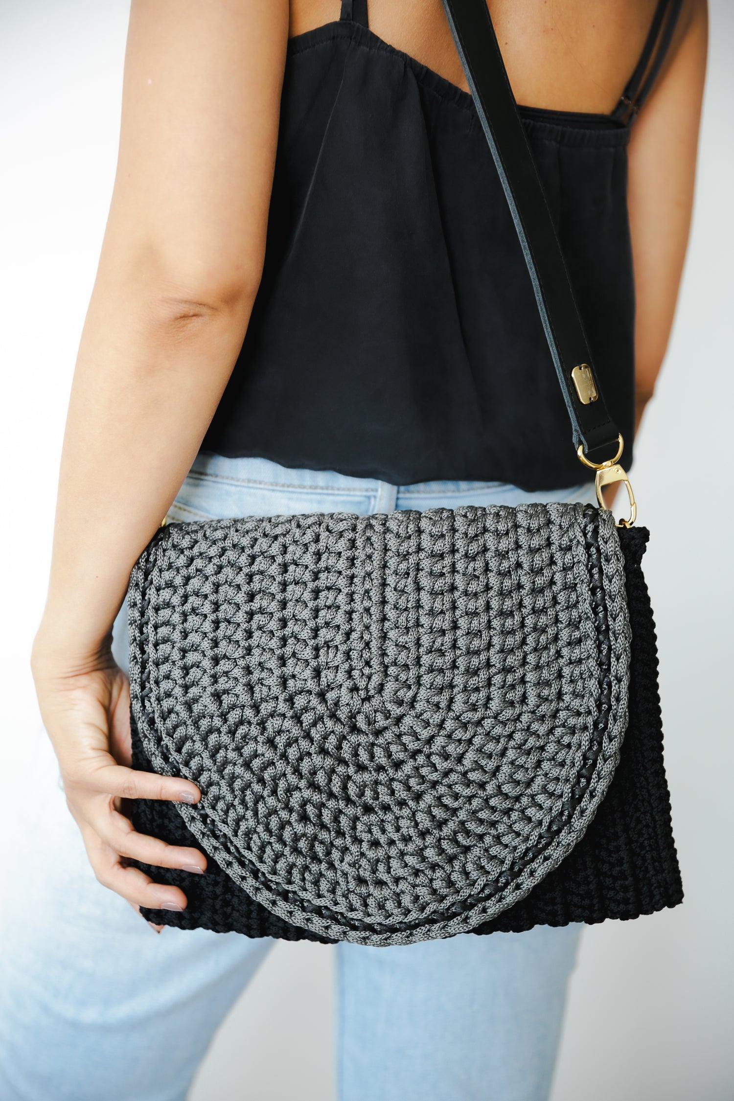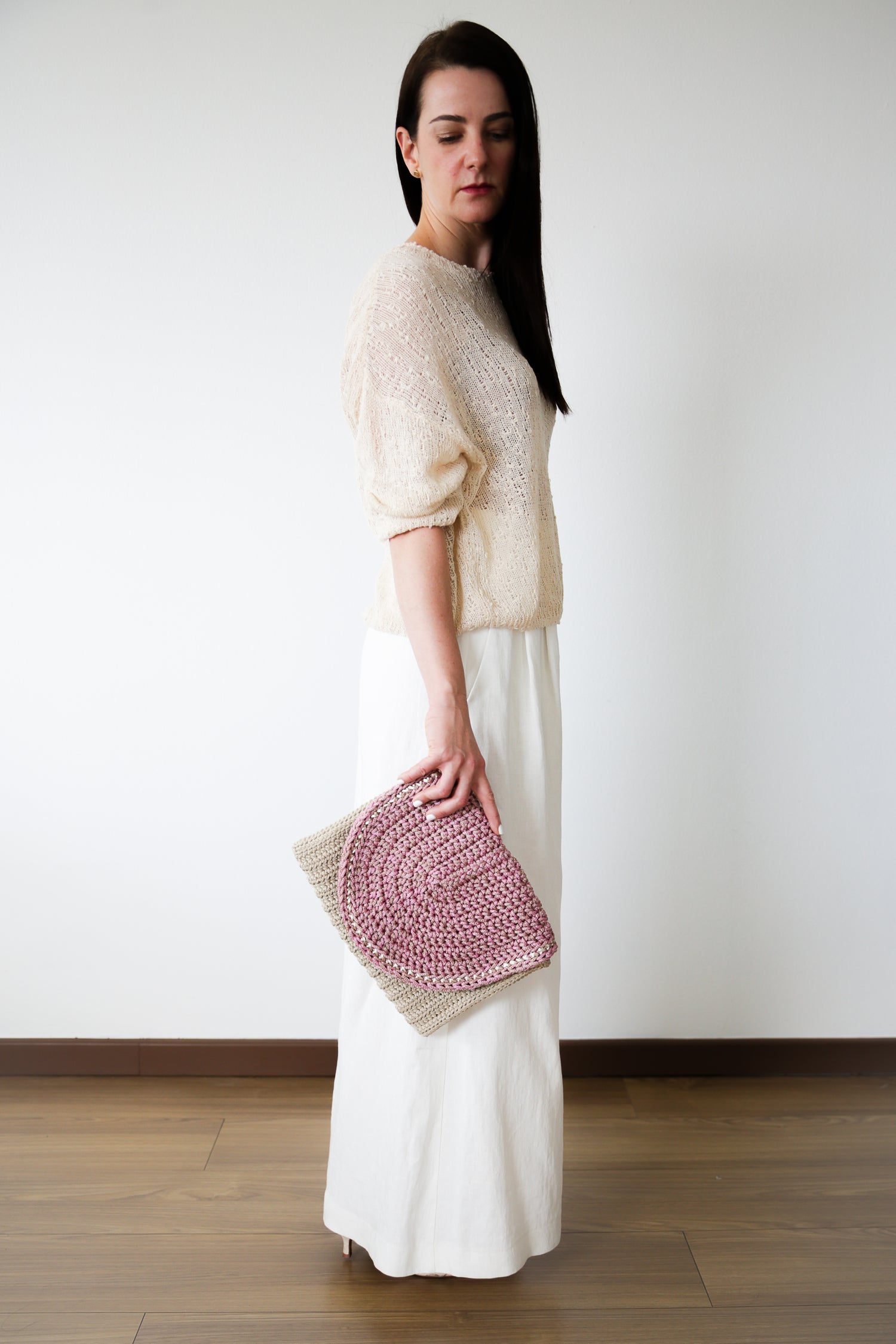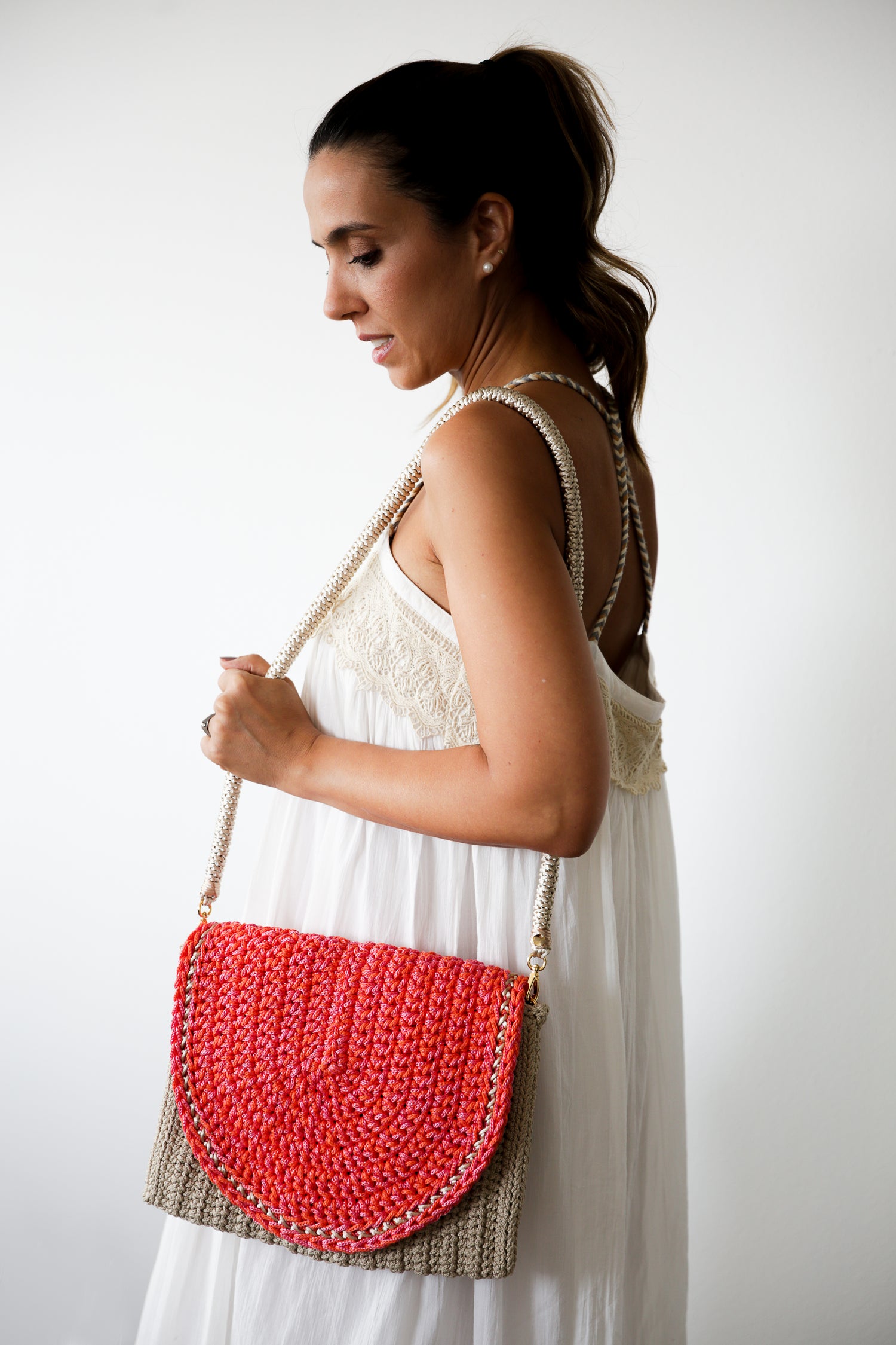 A Elza Bag é a nossa versão Bucket Bag em crochê artesanal com detalhes bordados e em macramê: é estruturada com uma trama muito especial.